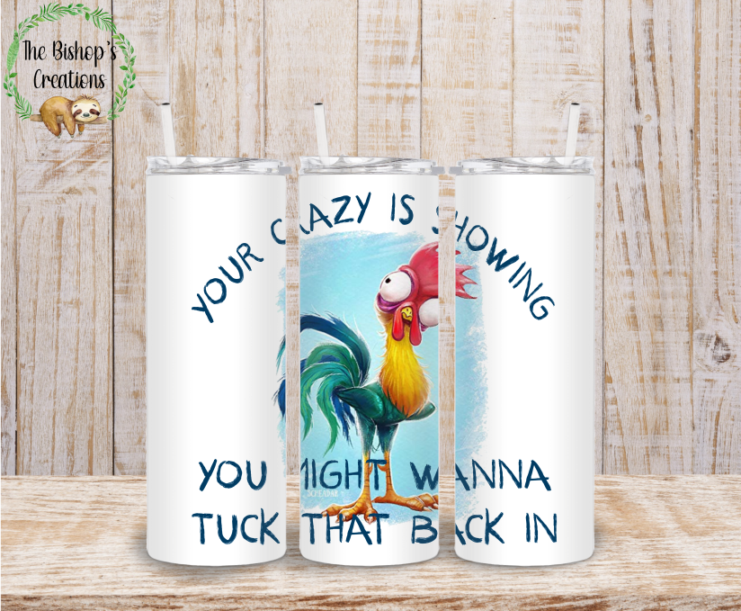 The Your Crazy is Showing Stainless Steel Tumbler is a top-notch beverage-toting solution. Constructed of double-wall vacuum-insulated stainless steel, it keeps drinks hot or cold up to 12 hours. In addition, a straw is included for added convenience.